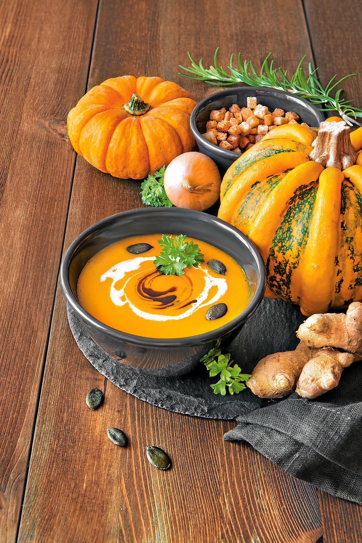 Ингредиенты: •корень имбиря 2–3 см •морковь •1/2 стакана нежирных сливок •репчатый лук •500 г тыквы •500 мл воды или овощного бульона