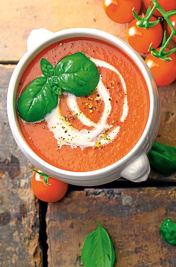 Ингредиенты: •5 средних помидоров •морковь •4 ст.л. растительного масла •пучок базилика •2 луковицы •1 ч. л. сахара •500 мл бульона •500 мл воды