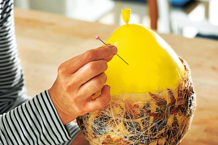 Для работы потребуется: •воздушный шар •сизаль (волокно) •сухие листья •клей ПВА •маленькие кусочки бумаги •кисть и иголка