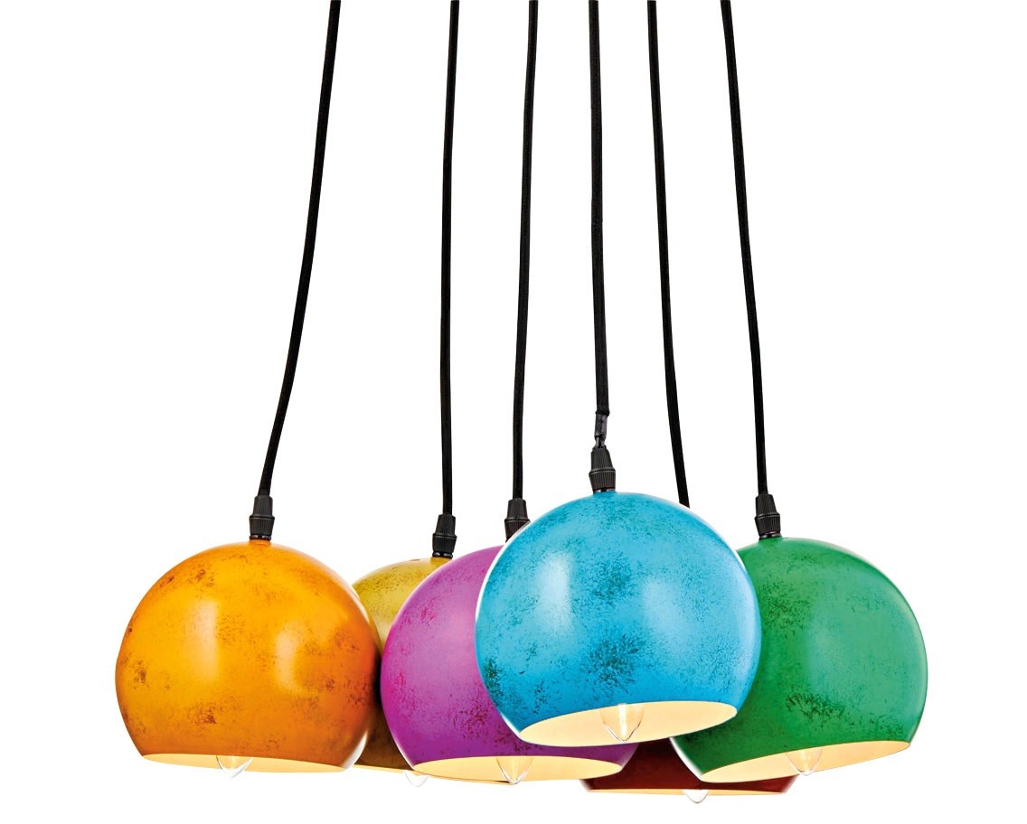 Несколько похожих светильников объеденены у основания и свисают «группой». Можно найти готовые решения, либо собрать «компанию» самой.