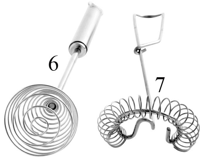 5. Самый распространенный вид венчика, идеален для взбивания кремов, муссов, яиц для бисквита, жидкого теста в высоких емкостях. Чем больше «лепестков», тем эффективнее работает прибор!