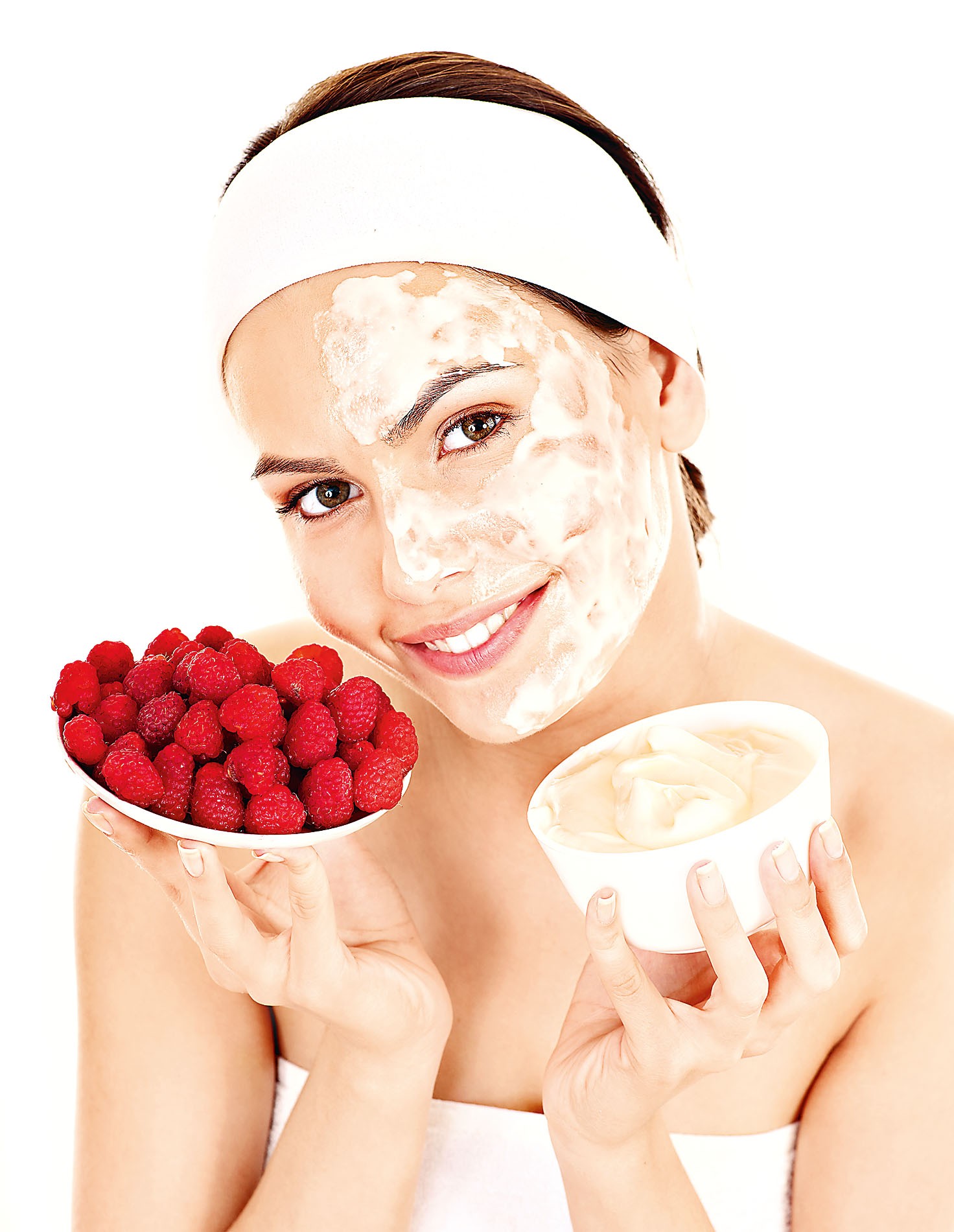 Возьми по 1 ст. л. свежей малины и овсяной муки (если нет готовой, перемоли овсяную крупу в блендере). Смешай с желтком до однородной массы и нанеси на очищенную кожу лица на 25 минут.