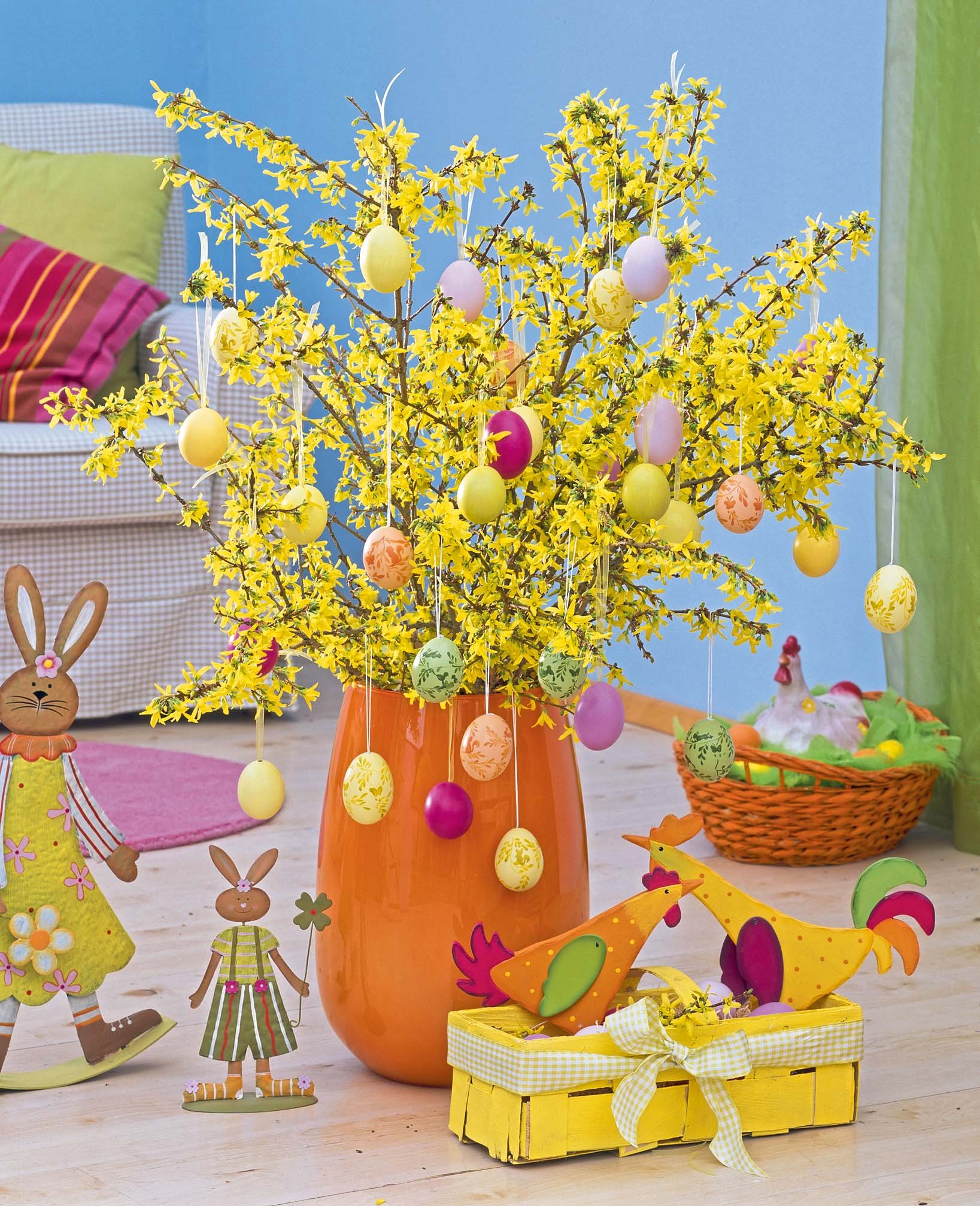 Не готова к кропотливой работе, о которой мы пишем выше? Купи стильные пластиковые яйца и также подвесь их при помощи тонких лент.