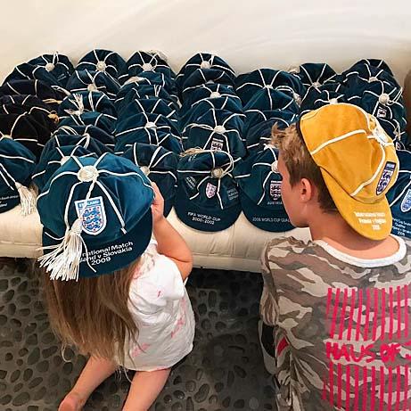 Дэвид Бэкхем показал коллекцию кепок – и двух помощников.