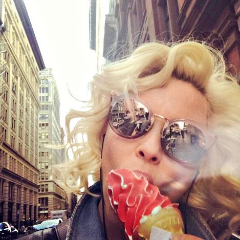 Элизабет Бэнкс передает привет из Нью-Йорка этим селфи с вишневым мороженым