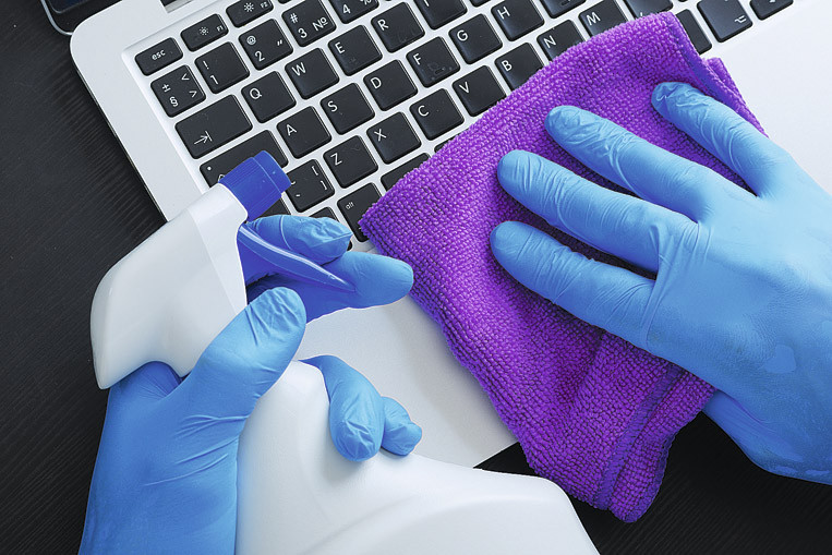 3–4 раза в неделю протирай поверхности гаджетов и кнопки на них дезинфицирующими салфетками для оргтехники или мягкой тряпочкой, слегка смоченной в спирте. Если этого не делать в течение всего двух недель, на каждом квадратном сантиметре телефона, как и на поверхности мышки и клавиатуры скопятся тысячи микробов.