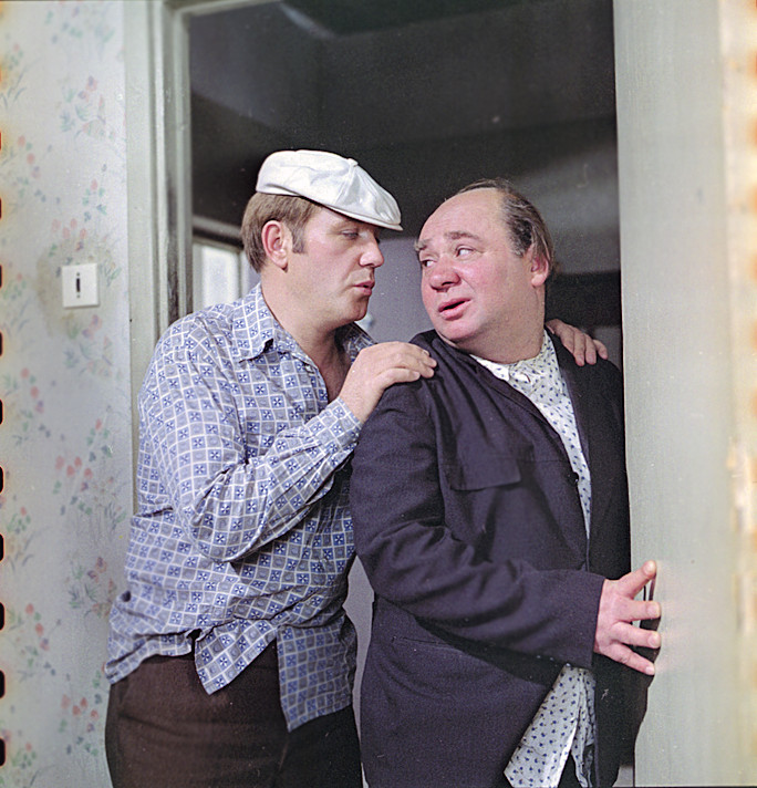 Своего любимого артиста, Евгения Леонова, режиссер взял без проб. Парадокс: в жизни Леонов не употреблял алкоголь, но персонажи подшофе ему легко давались, даже гримировать не нужно было. Чего не скажешь о Куравлеве. Актеру накладывали профессиональный грим, чтобы он в кадре не выглядел трезвым.