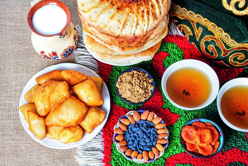 Бешбармак – мелко накрошенное отварное мясо с лапшой и бульоном, казахский плов и жареные пельмени тушпара.