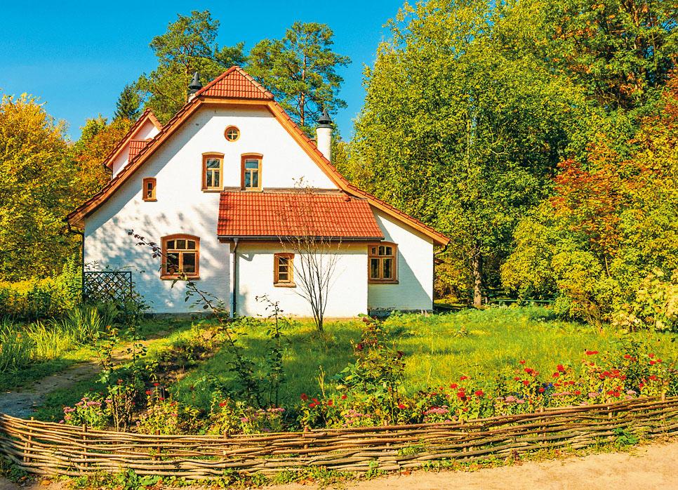 О домике на Оке художник В.Д. Поленов мечтал многие годы. Проектировал художник все сам, поэтому-то каждое здание выглядит необычно. Обязательно нужно сфотографировать все с разных ракурсов! Вслед за жилыми постройками здесь появился и парк с соснами, березами, кленами, пихтами, а в ближайшей деревне Бёхово на высоком берегу реки была построена церковь Святой Троицы, откуда можно полюбоваться золотым осенним пейзажем.