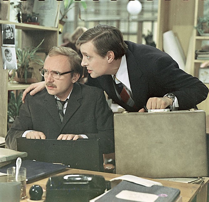 Служебный роман», 1977 г. Карьерист Самохвалов – первая звездная роль Олега Валериановича. Когда Басилашвили закончили гримировать, он встал, посмотрел на себя в зеркало и произнес: «Ну что ж, подлец готов!». Режиссер Эльдар Рязанов взял актера в свой фильм без проб. Очень хотел с ним поработать, ведь первый раз не получилось. Это Басилашвили должен был каждое 31 декабря есть на экране заливную рыбу и просить потереть ему спинку. Но у него умер отец, сниматься он не смог. Правда, актера все-таки можно увидеть в «Иронии судьбы...». На фото, которое выбрасывает Лукашин с балкона, а потом поднимает Надя, лицо Басилашвили, а вовсе не Яковлева.