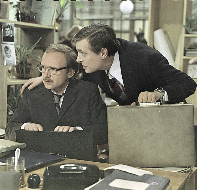 Карьерист Самохвалов – первая звездная роль Олега Валериановича. Когда Басилашвили закончили гримировать, он встал, посмотрел на себя в зеркало и произнес: «Ну что ж, подлец готов!». Режиссер Эльдар Рязанов взял актера в свой фильм без проб. Очень хотел с ним поработать, ведь первый раз не получилось. Это Басилашвили должен был каждое 31 декабря есть на экране заливную рыбу и просить потереть ему спинку. Но у него умер отец, сниматься он не смог. Правда, актера все-таки можно увидеть в «Иронии судьбы...». На фото, которое выбрасывает Лукашин с балкона, а потом поднимает Надя, лицо Басилашвили, а вовсе не Яковлева.