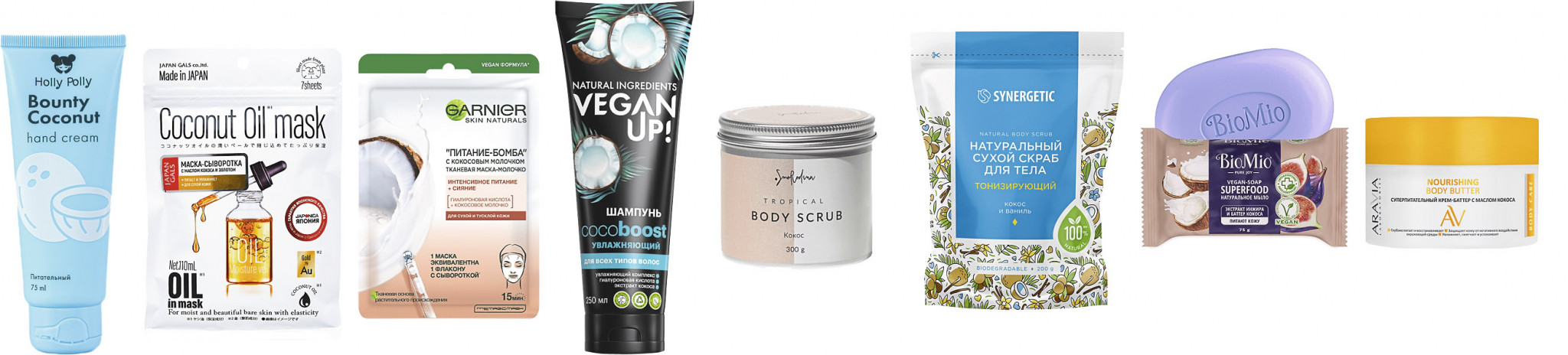 - «Кокосовое молоко» – популярный ингредиент всевозможных тоников и шампуней.
