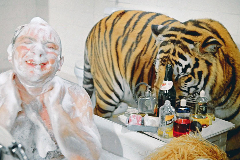 Первый в нашем кино мужской стриптиз устроил Евгений Леонов в «Полосатом рейсе», чем, кстати, гордился и всячески иронизировал на этот счет. Хотя реальный повод похвалить себя у Леонова был другой. Это миф, что в сцене купания в ванне актера обманули и в последний момент убрали стекло между ним и тигром. От идеи поставить перегородку отказались сразу – она бликовала в кадре. Пришлось уговаривать Леонова рискнуть. Тот сначала сопротивлялся, но потом переборол страх. К счастью, в «партнеры» актеру достался ручной тигр Пурш – любимец Маргариты Назаровой. Воспитанный зверь догонять голого Леонова не стал, его больше интересовала ванна. Было жарко, и Пуршу хотелось охладиться.