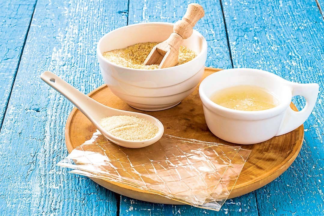 2 ст. л. быстрорастворимого желатина залей 6 ст. л. чуть теплой воды. Оставь на 20 минут для разбухания. В процессе помешивай, чтобы не было комков. Добавь 1,5 ст. л. любой маски для волос без силиконов. Наноси на чистые, подсушенные полотенцем волосы, отступая 5 см от корней. Укутай голову полотенцем, держи 40 минут. Можешь прогреть феном.