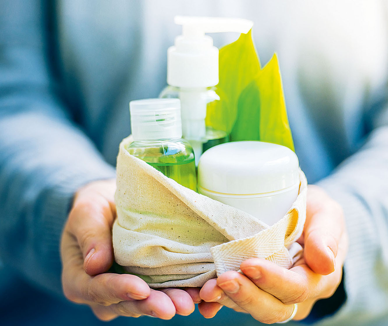 Осознанность при выборе косметики может проявляться и в том, чтобы обращать внимание на ее упаковку. Она бывает переработанной и перерабатываемой. Первая означает, что ее создали из пластика, который использовался раньше, вторая – ее упаковку можно использовать снова. Некоторые марки перешли на биоразлагаемый пластик. Он создается из сахарного тростника и кукурузного крахмала и после разложения оставляет воду и углекислый газ. Процесс этот занимает несколько месяцев, а не сотни лет, как в случае с обычным пластиком.