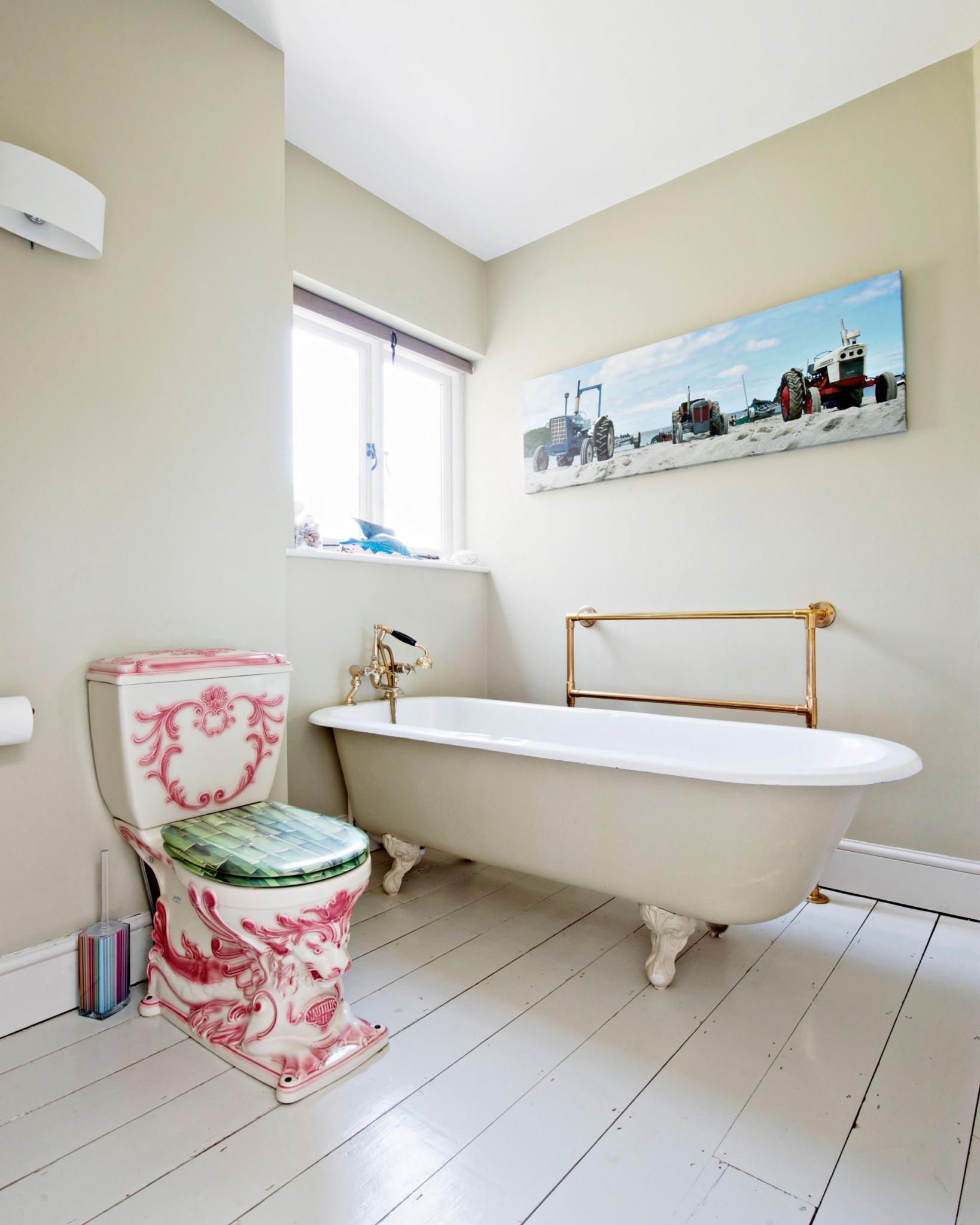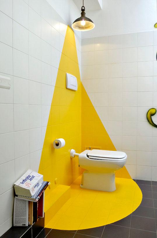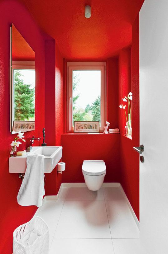 Известно, что этот цвет повышает тонус и заряжает бодростью. Пожалуй, для спальни или гостиной он слишком активный, а вот туалет получается классный.