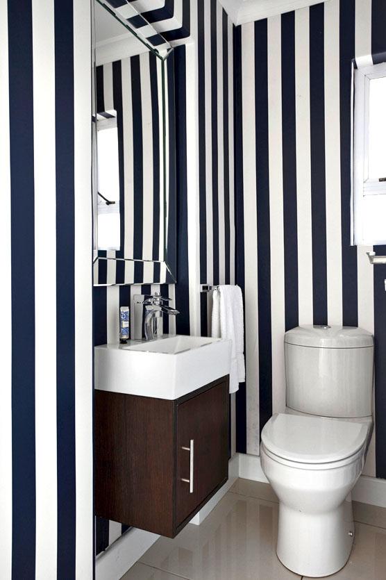 Вертикальная полоска, «приподнимающая» потолок. Мебель и сантехника простых форм. Стильно!