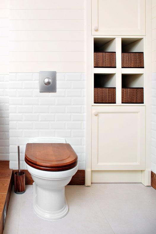 Если площадь туалета позволяет, спланируй искусственные выступы в плитке – под полочки. К ним же стоит сделать подсветку.