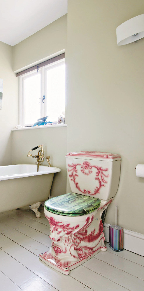 Маркером сделай набросок и приступай к росписи унитаза. Чтобы рисунок был рельефным, нанеси 5–6 слоев краски. В конце необходимо покрыть все защитой – лаком или глазурью.