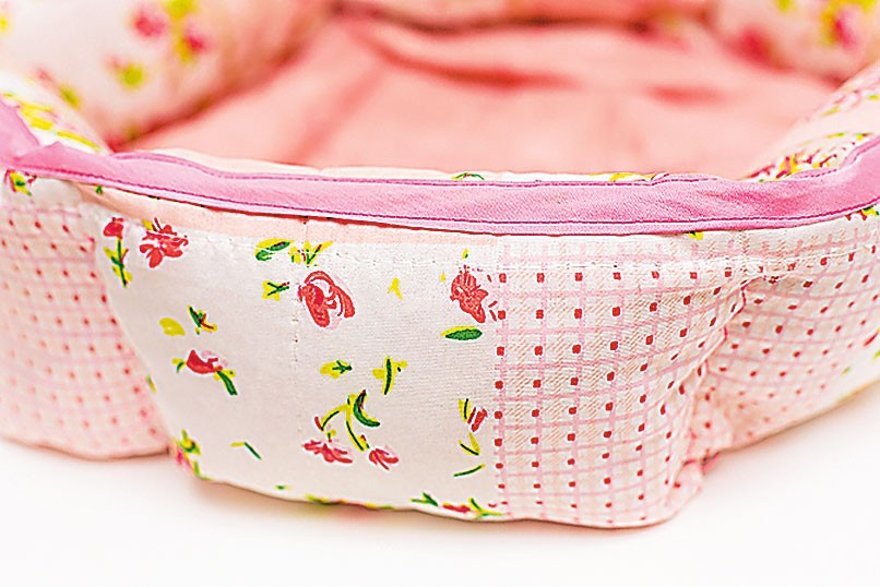 Плотно набей карманы синтепоном таким образом, чтобы бортики стали упругими. Притачай внутреннюю сторону бортика к дну зигзагообразным швом.