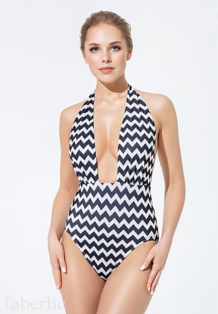 Слитные купальники для девушек с пышными формами – женственно и практично. Не забывай, что крупный рисунок всегда добавляет объем, а мелкий или в вертикальную полоску – скрадывает.