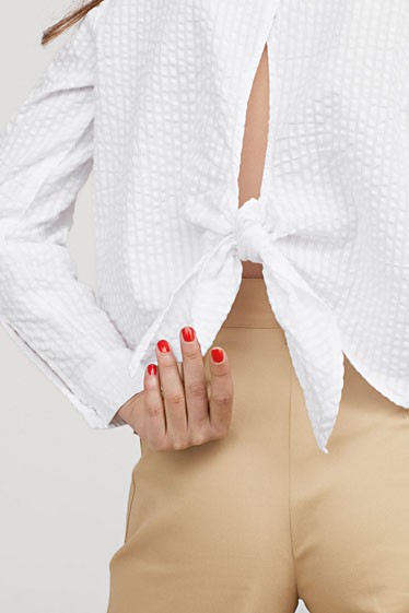 Фактурный крой, цвет белого листа и умелая игра с объемами – словно специально созданы для лета. Хлопковые ткани – идеальный материал для подобных экспериментов.