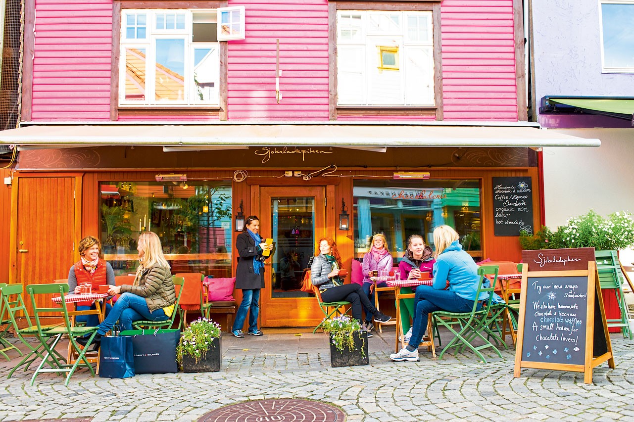 Сначала набережная с разноцветными домиками, растиражированная на открытках и магнитах из Бергена. Затем рыбный рынок! Чего тут только нет: от лосося и креветок до китового мяса (Норвегия – одна из немногих стран, где его можно попробовать), но хит продаж – вяленая треска. Рыбу разделывают, моют, засаливают и подвешивают на столбиках, где она продувается сильными северными ветрами. Дальше уже нет предела фантазии. Например, вяленую треску готовят в томатном соусе и белом вине. Этот вариант подают в местных кафе.