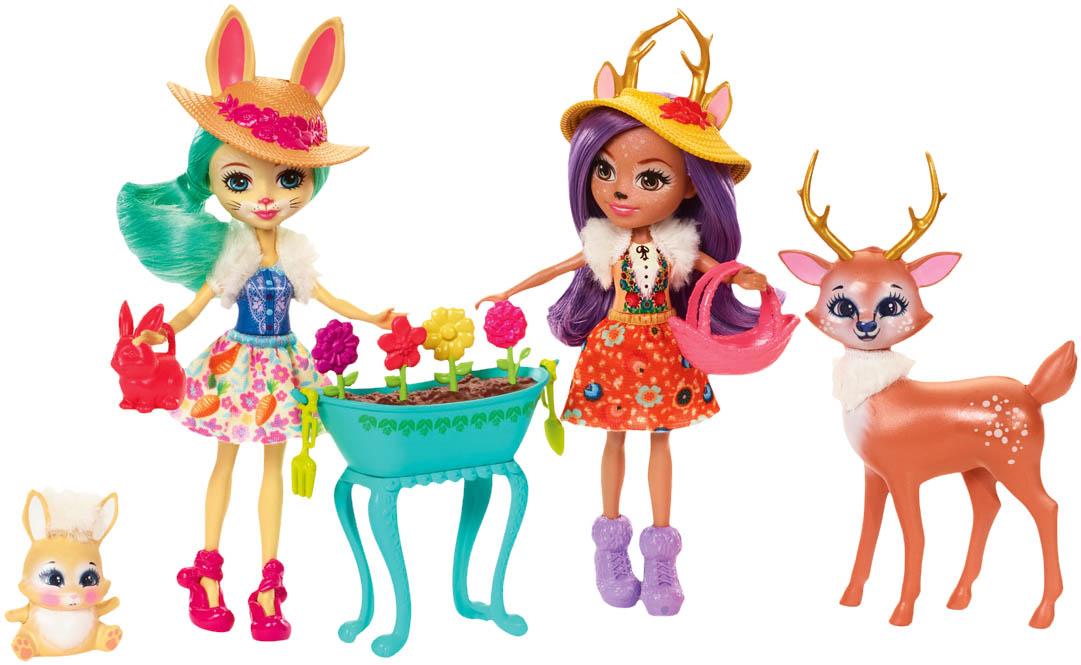 Маленькие принцессы оценят замечательный набор Enchantimals от Mattel. В него входят две куклы, две фигурки питомцев и аксессуары. С этими волшебныгероями интересно играть, придумывая разные увлекательные истории. Девочки Данэсса и Флаффи очень похожи на своих любимых зверушек – очаровательного олененка и пушистого кролика. Друзья живут в зачарованном лесу, охраняют его и все вместе с удовольствием работают в саду. В изящный вазон они сажают цветы, поливают их из леечки, а когда растения подрастут – собирают их в корзинку. По бокам у горшка есть крючочки, на которые ребята вешают грабельки и лопаточку. Если на улице жарко, девочки надевают шляпки, чтобы не напекло голову и не пострадали их мягкие волосы, которые они так любят расчесывать... Придумай продолжение сказки! Набор можно купить в сети магазинов toy.ru или заказать на сайте.