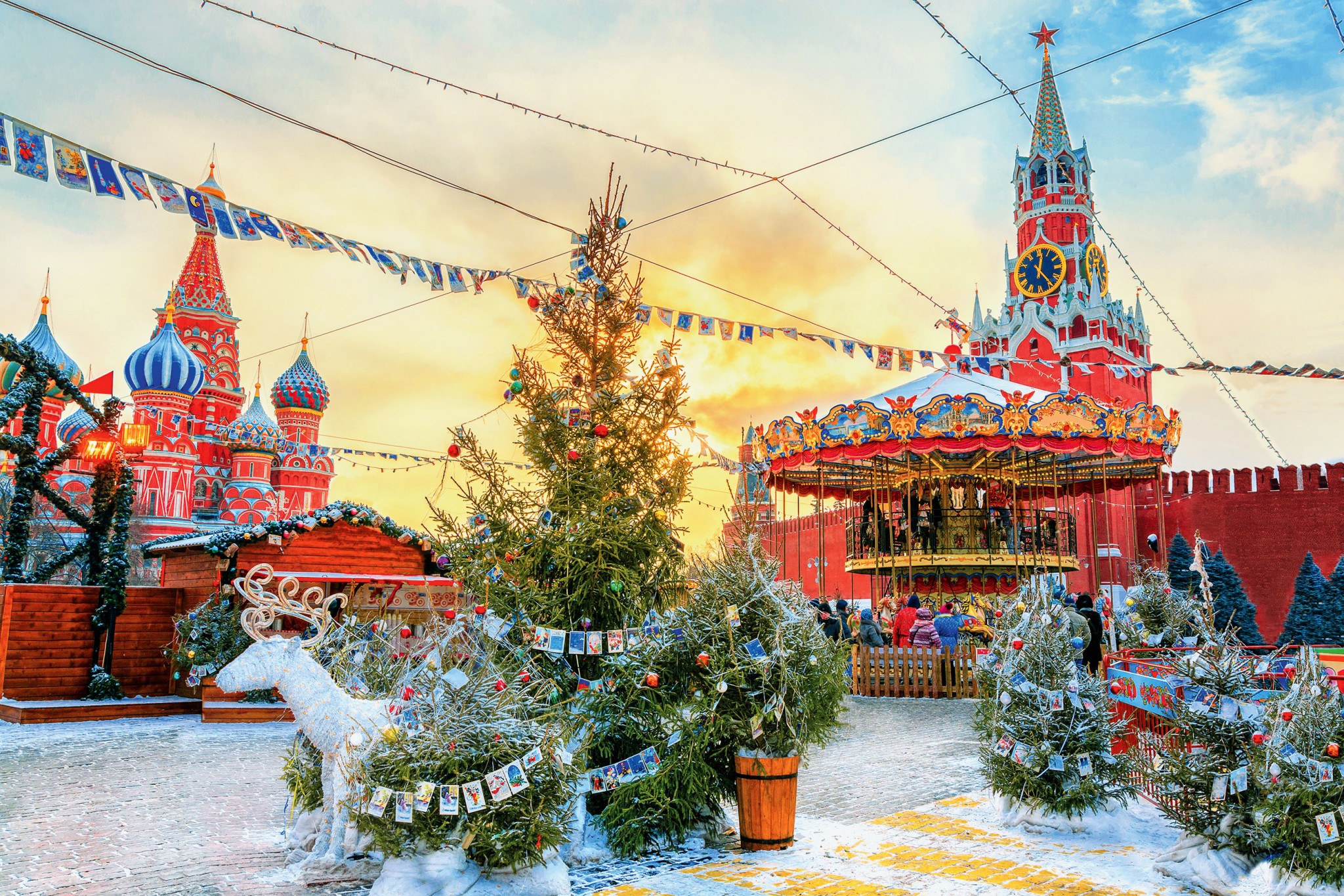 Предлагаем весь день гулять в центре. Ярмарка на Красной площади самая традиционная и любимая у горожан. Здесь кружится карусель, пекут блинчики и наливают чай из самовара. А какие фотографии получаются на фоне звезд Кремля и куполов Собора Василия Блаженного! Перемещаемся на площадь Революции, где можно застрять надолго, рассматривая декорации механических театров. Благодаря множеству движущихся деталей оживают сказки «Конек-горбунок», «По щучьему веленью» и «Золушка».
