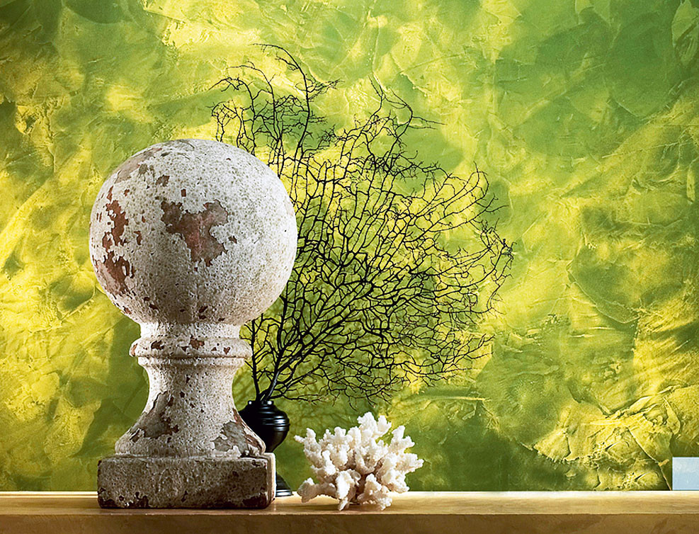 Декоративность краскам придают особые техники нанесения и специальные инструменты. Они помогают имитировать рельефную фактуру камня, текстуру дерева и бетона. Но классика жанра – воспроизведение тканей, которые словно «драпируют» помещение единым полотном, создавая ощущение уединения и уютной камерности. Можно выбрать краску, имитирующую шелк, бархат или грубую мешковину.