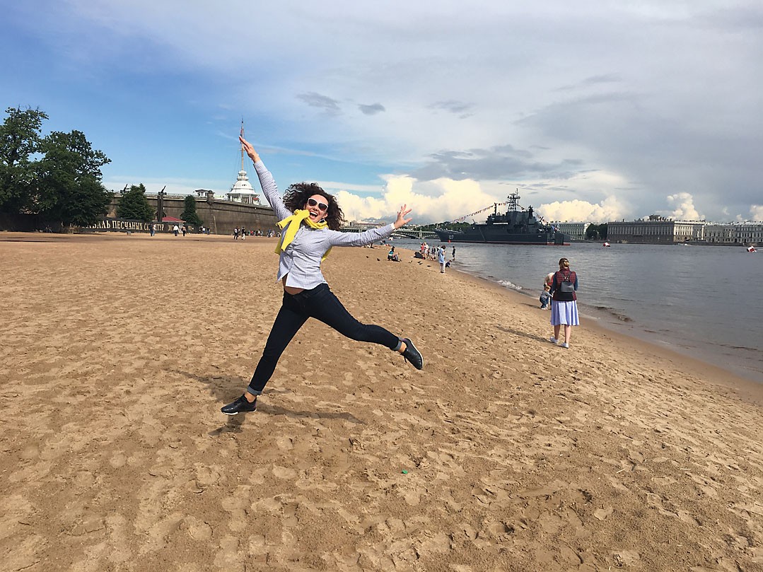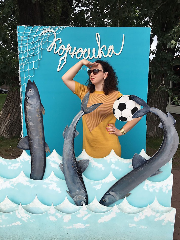 Полюбовавшись на военных (красивых и здоровенных), мы часа два погуляли по территории крепости, порелаксировали на здешнем пляже. К несчастью (или счастью?) набрели на ресторан с говорящим названием «Корюшка». И сразу так захотелось фирменной питерской рыбки, что мы дали слабину. За жареную корюшку, хачапури, квас и сметанник заплатили 1980 руб. на двоих. Вышли сытые, но терзаемые муками совести. Хотели же экономить!