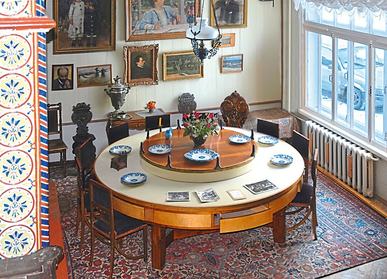 Так появилась идея репинского круглого стола на 20 персон. Его сделал местный столяр – финн Пекко Ханекайнен. Суть в чем? Вращающаяся центральная круглая часть стола не требовала присутствия обслуги. Гости обязаны были сами себя обслуживать. А грязная посуда складывалась в нижние выдвижные ящички. За нарушение правил самопомощи налагался штраф – речь-экспромт с трибуны, расположенной в углу столовой. Тосты, кстати, тоже запрещались. Чем больше нарушений, тем веселей получался обед. Хочешь больше подробностей? Тогда приезжай в «Пенаты»! Здесь и не такое расскажут.