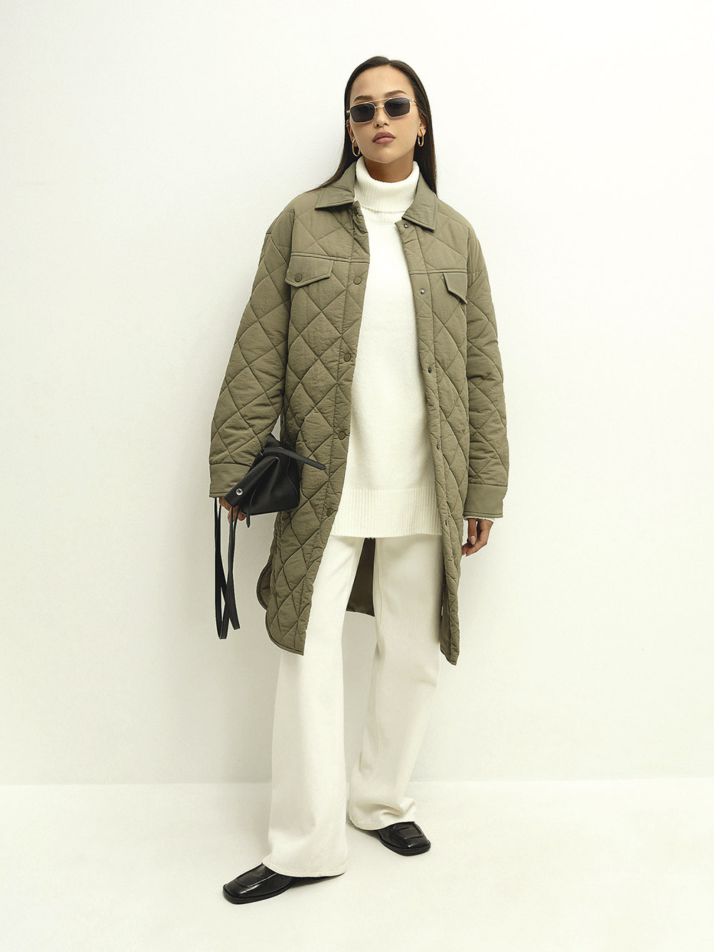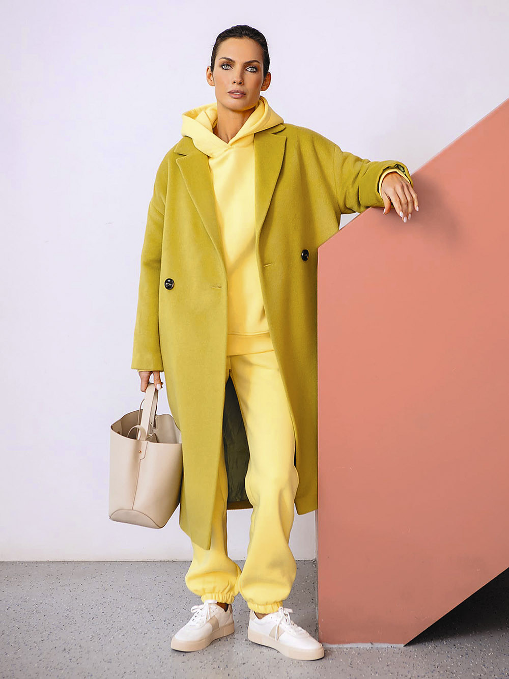 Монотонные оверсайз модели можно сочетать с нестандартными вечерними юбками средней или большой длины.