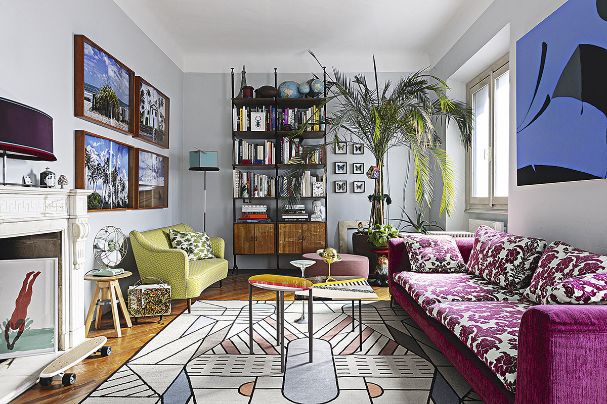 В этой зоне используй смелые декоративные решения. Поклей обои с контрастным геометрическим узором или покрась стены в необычные цвета. Мебель выбирай контрастных оттенков, но следи, чтобы интерьер не утомлял буйством красок. Рядом с мягким диваном на низких деревянных ножках поставь пару кресел округлой формы и журнальный столик. Для антуража добавь кружевные салфетки и технику в ретростиле. На стены можно повесить картины без рамок, постеры или семейные фото. Хорошо впишется в интерьер дисковый телефон или виниловый проигрыватель.