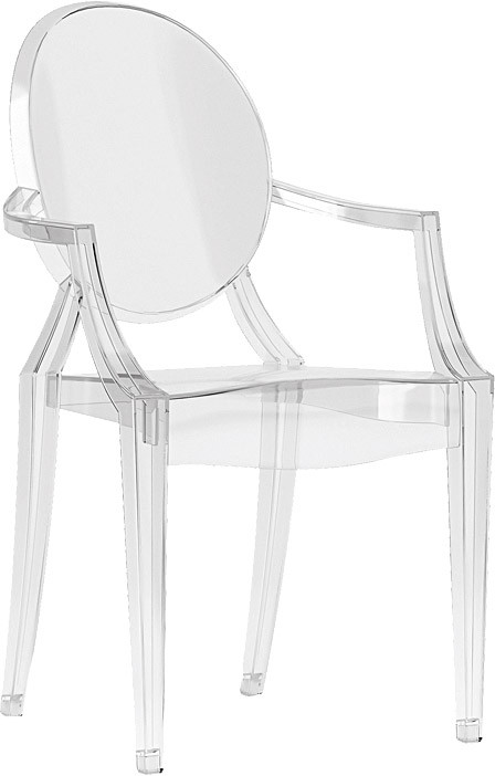 Этот предмет мебели под названием «Призрак Людовика» был изобретен в 2002 году. Французский дизайнер Филипп Старк попытался повторить очертания моделей в стиле барокко, но придать им более современное звучание. Именно поэтому изготовлен этот предмет мебели из современного материала поликарбоната.