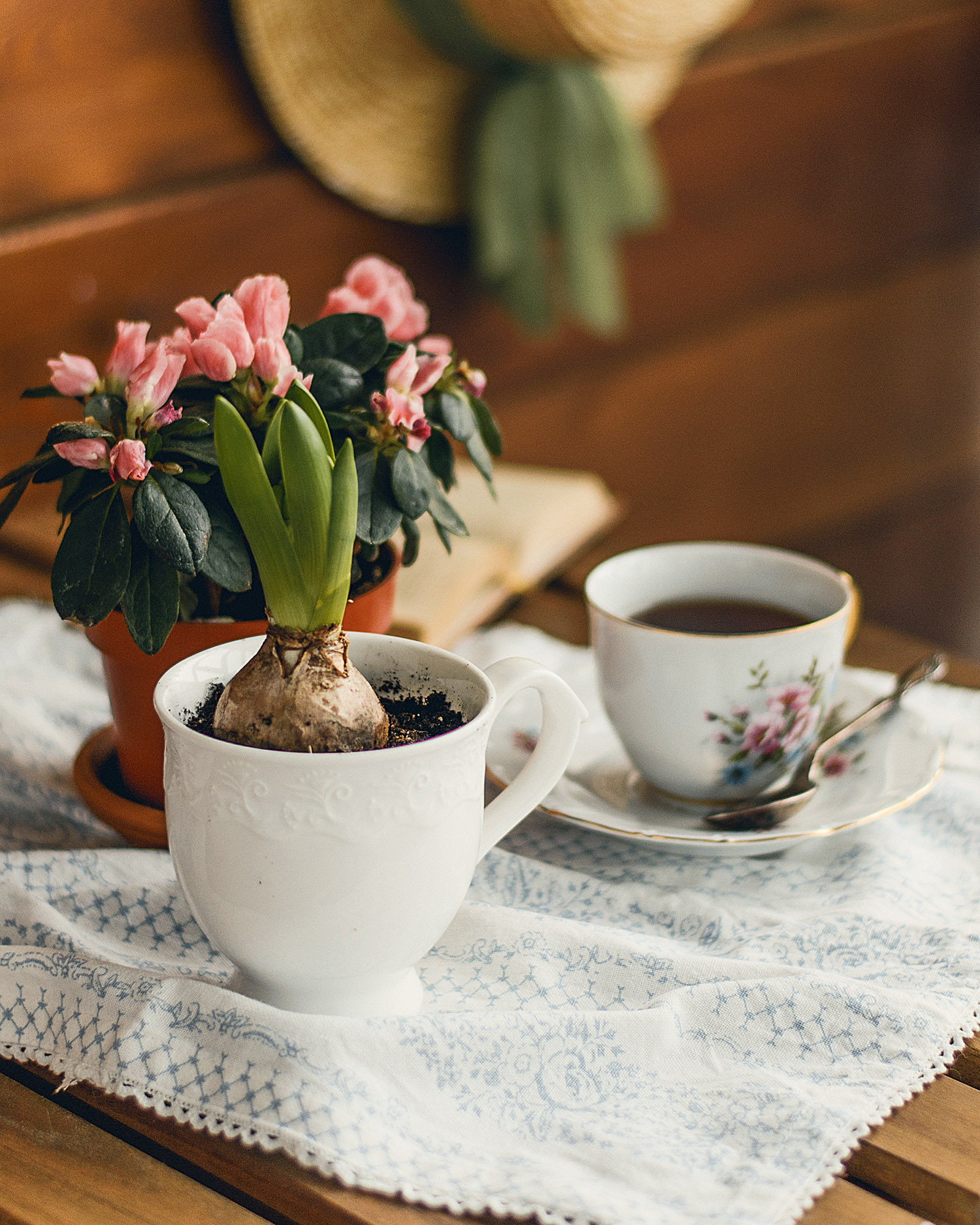 Луковичные первоцветы – олицетворение ранней весны. Уже с середины февраля они начинают продаваться практически в каждом магазине, напоминая, что весна уже совсем скоро. Вместо классических керамических горшочков их можно пересадить в чашки со сколами или трещинками: так распустившиеся цветы будут смотреться еще наряднее!