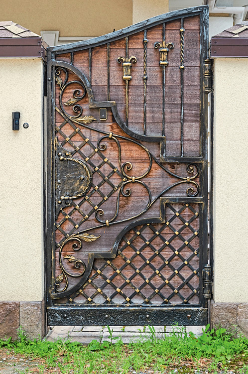 Выбор материала и дизайн «правильной» калитки всецело зависят от стиля, в котором выдержан участок. Классическая деревянная модель вряд ли впишется в дизайн современного сада, а металлические ворота четкой геометрической формы не слишком уместны в рустикальном или природном зеленом декоре. Наравне со стоимостью при выборе калитки стоит обратить особое внимание и на ее «запросы», особенности ухода. Например, деревянные элементы придется регулярно пропитывать специальными защитными средствами, иначе их век будет до обидного короток. Металлические более выносливы, но и их периодически следует покрывать лаком. Самыми беспроблемными считаются неокрашенные оцинкованные модели и калитки из нержавеющей стали.