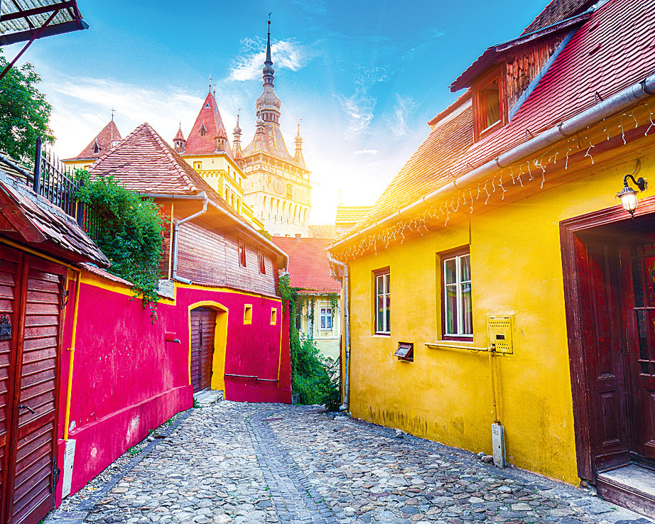 Как-то даже странно обнаружить в родном городе Влада Цепеша, ставшего прототипом графа Дракулы, столь веселую архитектуру.