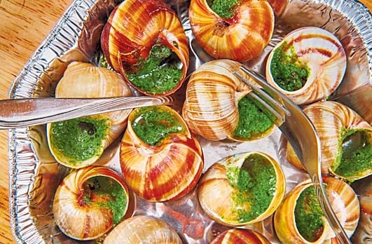 Лучшие виноградные улитки, выращенные в регионе Бургундия, начиняют так называемым чесночным маслом. Едят с помощью особых щипцов (зажимают раковину) и вилки с двумя зубцами (достают начинку).