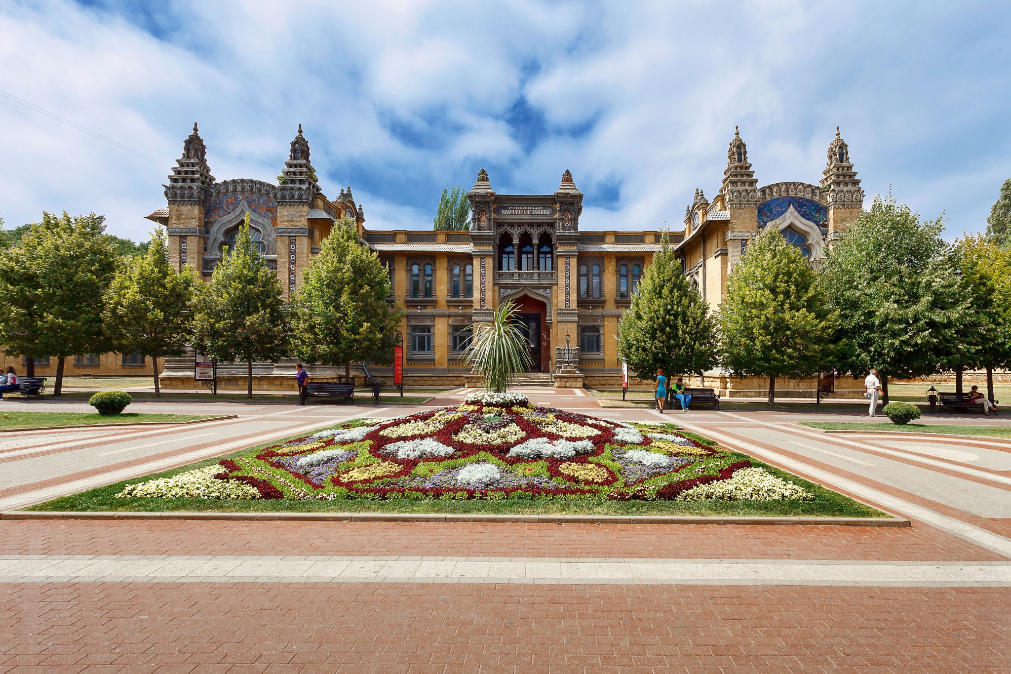 Лечебной программе ничем на уступает культурная. В Пятигорске можно прогуляться по 200-летнему парку «Цветник» или пройтись с гидом по лермонтовским местам (поэт часто бывал в Пятигорске и погиб здесь на дуэли). За панорамными видами надо подниматься по канатке на гору Машук, а чтобы повстречать Остапа Бендера – идти к Провалу. У входа в эту пещеру с озером минеральной воды герой продает билеты, чтобы «Провал не провалился».