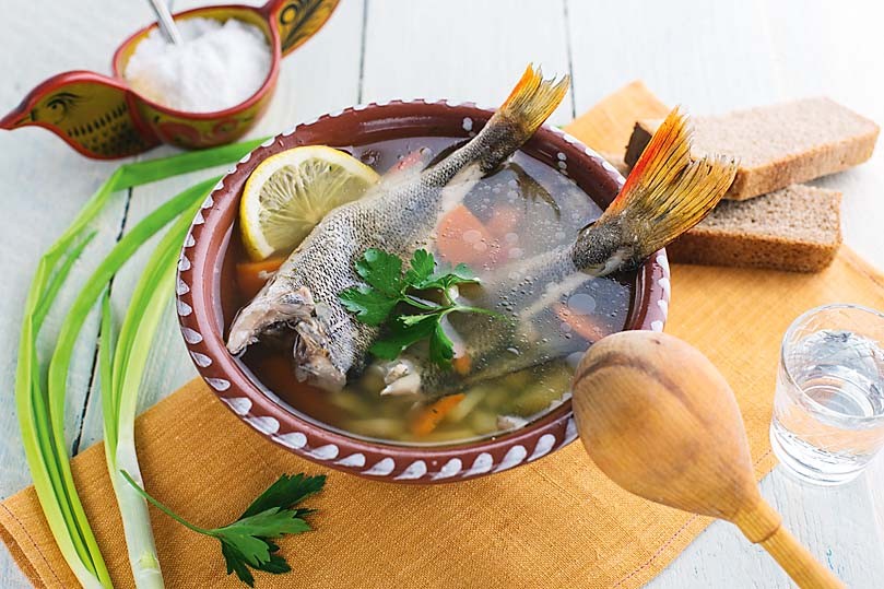 Все вместе мы собрались уже только на ужин в ресторанчике с традиционной кухней и фольклорной программой. Встречали нас хлебом-солью, а угощали фирменной ухой из нескольких сортов рыбы с добавлением томатов и зелени, раками, пирогами и соленым арбузом.
