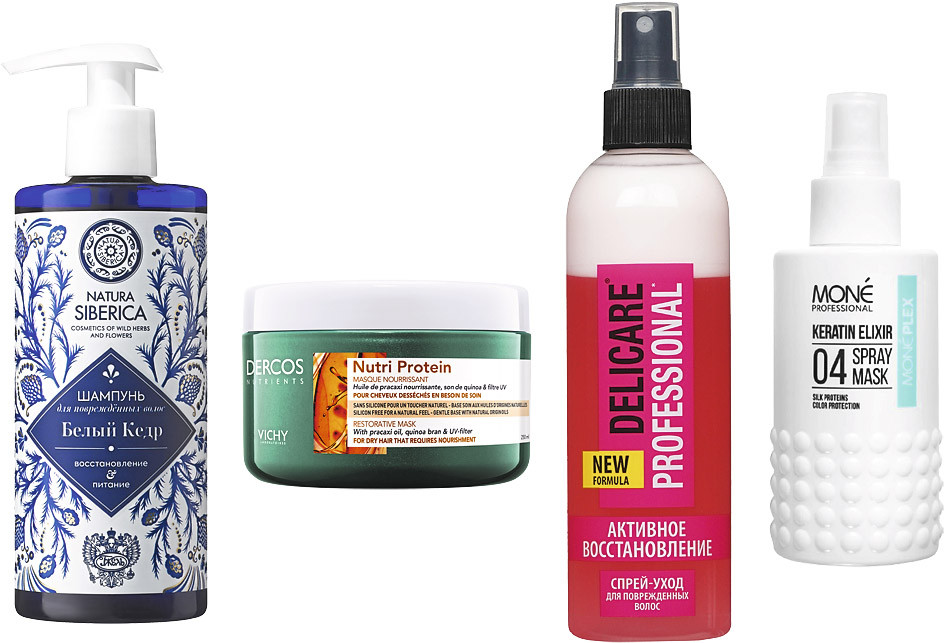 Первое, что мы делаем, – это не записываемся к мастеру, а проводим ревизию среди домашних уходовых средств. Ищи шампуни и кондиционеры с кератином и витаминными комплексами в составе. Особый упор стоит сделать и на восстанавливающие бальзамы и маски, насыщенные маслами. Последние рекомендовано использовать дважды в неделю. Можно и нужно подключить несмываемые спреи и масла для кончиков волос.