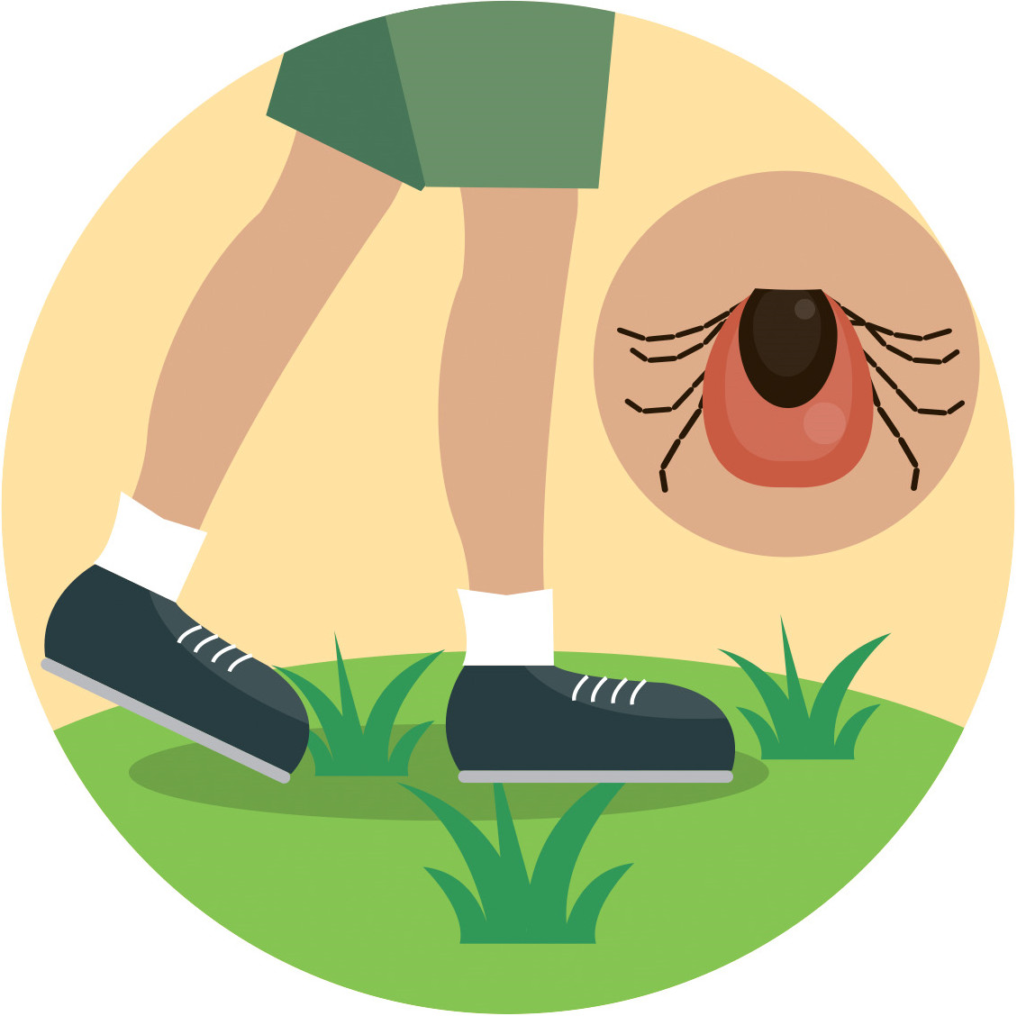 1. Остерегайся высокой травы и кустарника во время прогулки по лесу. Держись середины тропы. Надень головной убор.