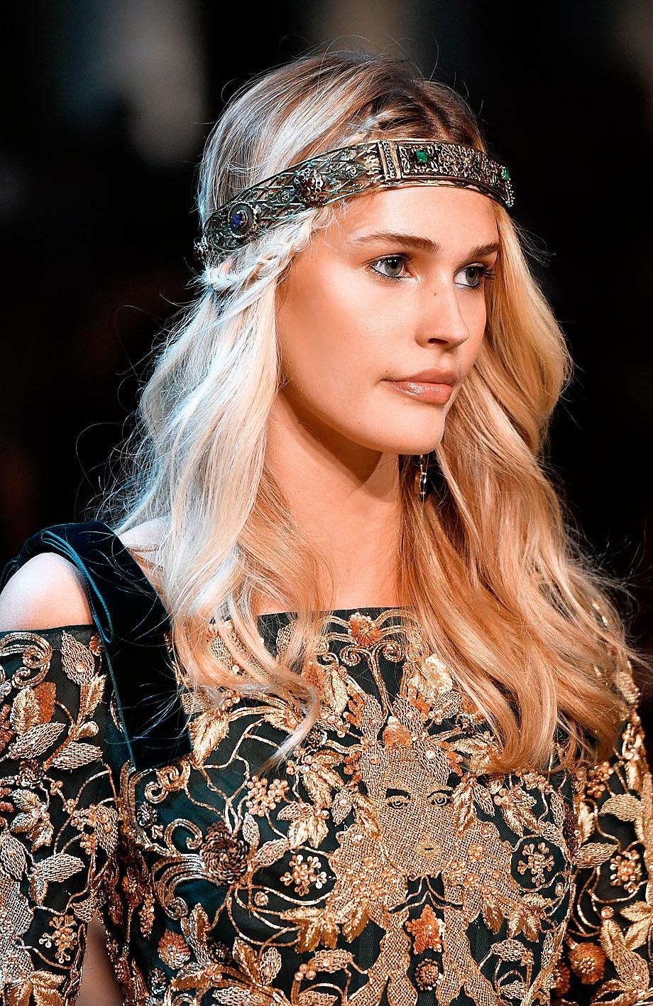 Украшения для волос с тканевыми цветами уступили место металлическим ободкам с «драгоценными» камнями. Очень удобно: можно не переживать из-за отсутствия укладки! С таким аксессуаром уже выглядишь по-царски.
