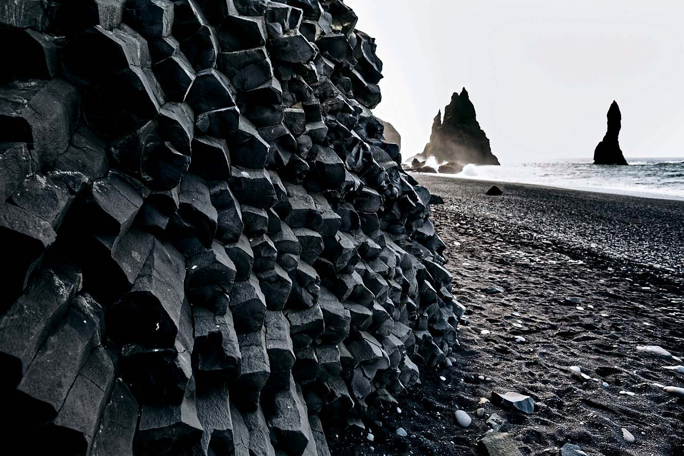 Среди черных-черных скал на черном-черном песке... Нет, это вовсе не первые кадры фильма ужасов, скорее, передача о путешествиях, в которой рассказывается о необычном пляже Vik в 180 км от исландской столицы Рейкьявик. Песок здесь и в самом деле готически черный – результат вулканической деятельности. Потрясающий пейзаж дополняют базальтовые скалы и стальной цвет Атлантического океана.