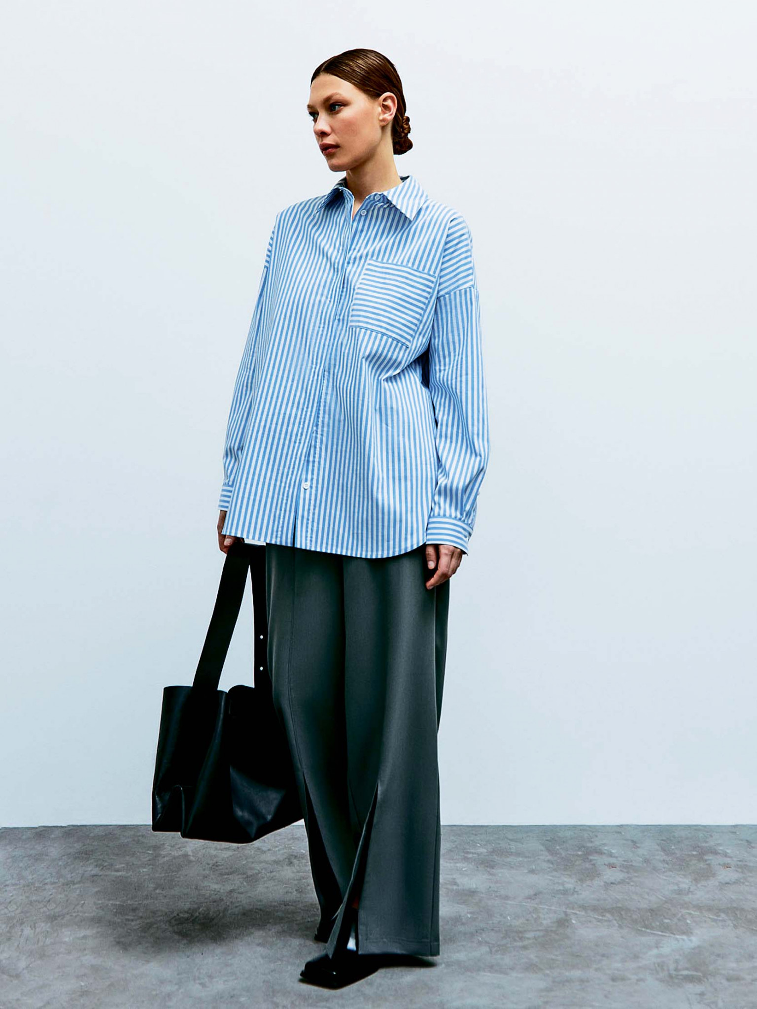 Кажется, что светло-серый и нежно-голубой были созданы друг для друга. Образ выглядит более гармоничным и менее скучным, чем с белым цветом (хотя белые детали добавить тоже неплохо). Серые карго + голубая сорочка + белый свитшот, накинутый на плечи = стильный лук в университетском стиле.