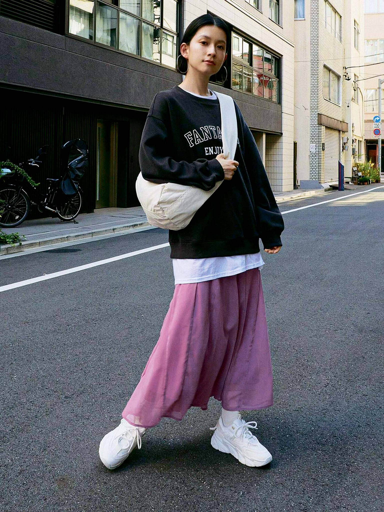 Сегодня барби-розовых оттенков вокруг так много, что когда от них кружится голова, это совершенно нормально. Однако если тебе все эти кукольные и одновременно конфетные истории ничуть не надоели, обрати внимание на то, как здорово выглядит свитшот цвета мокрого асфальта вместе с розовым.