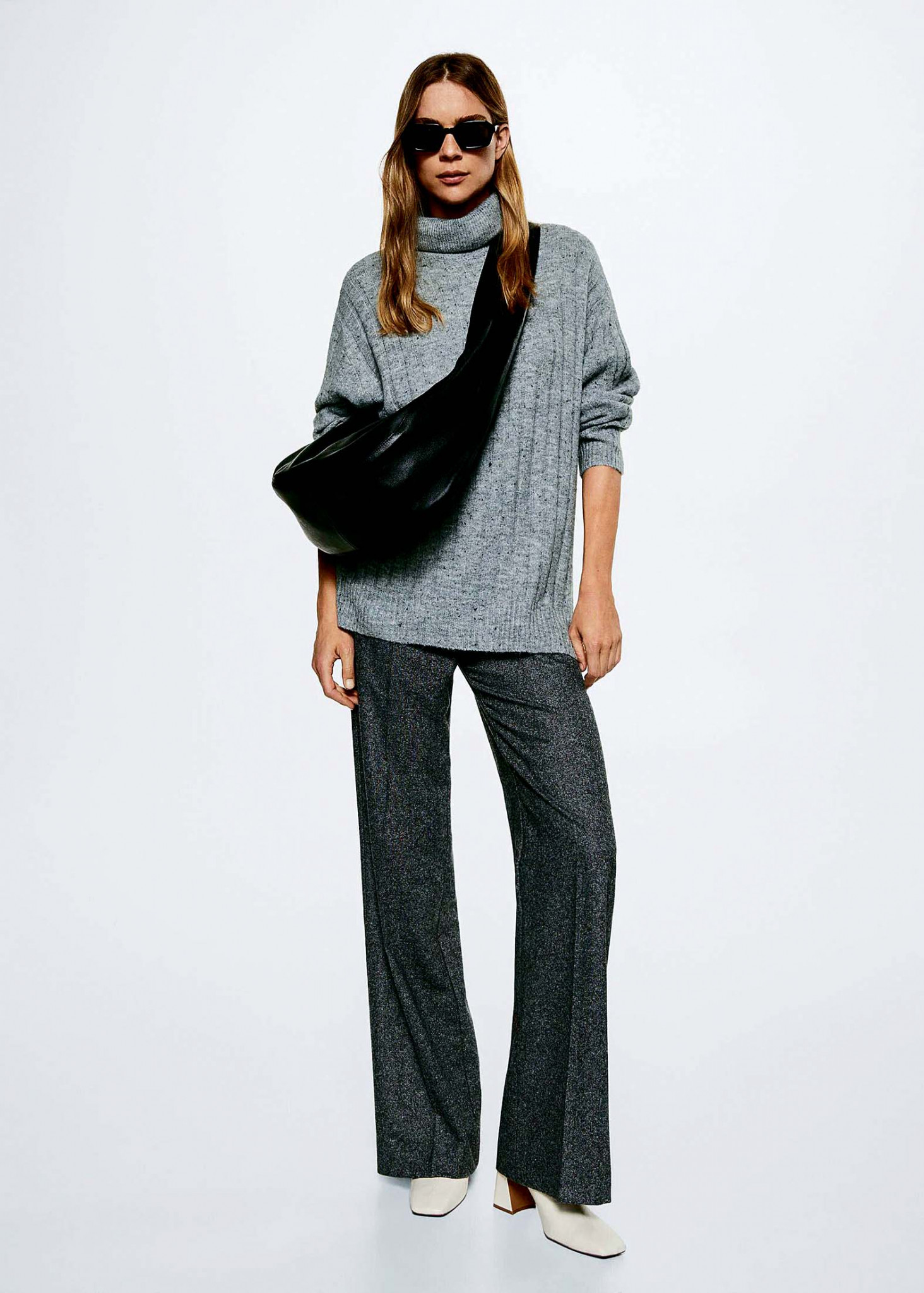 Строгое, но эффектное сочетание, которое будет прекрасно смотреться в офисных и деловых образах. Серый брючный костюм оверсайз с черной водолазкой или топом надевай на встречу. А в серой юбке из экокожи с черным лонгсливом или черной блузой отправляйся сначала на работу, а вечером в бар с подругами.
