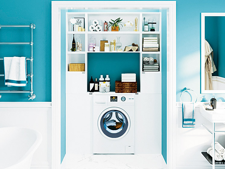 5. Стена над унитазом. Это пространство просто необходимо эффективно использовать, если санузел в твоей квартире совмещен. Существуют специальные стеллажи с длинными ножками и высокими полками, которые устанавливаются за унитазом, создавая дополнительные возможности для хранения. Вряд ли стоит держать в таком стеллаже помаду и открытые кремы, но запасы геля для душа, парочку закрытых упаковок лосьонов – вполне.