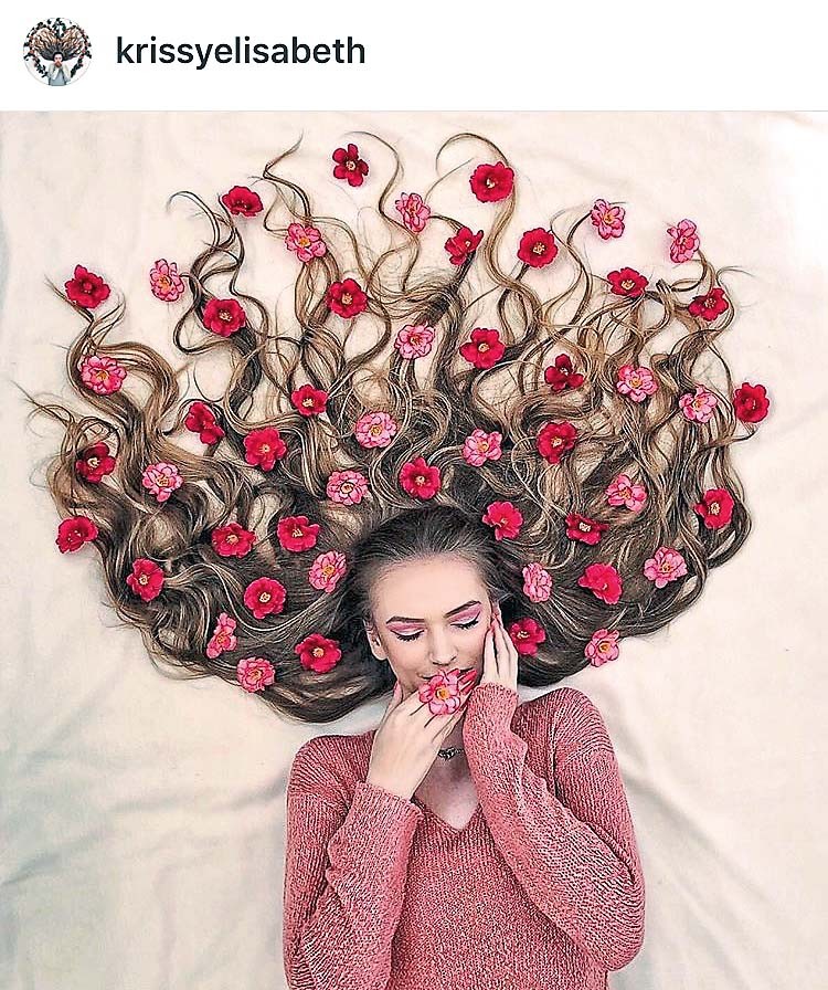 Художница из Нидерландов Крисси Элизабет создает из своих волос картины. Локоны она раскладывает причудливыми колечками и украшает пряди цветами и листьями. Зрелище заворожило уже почти 17 000 подписчиков.